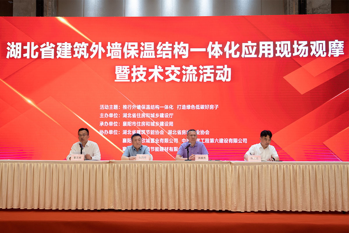 6月26日,湖北省建筑保溫結構一體化工程應用現場觀摩暨技術交流活動在襄陽市召開。湖北省住建廳二級巡視員洪盛良、湖北省住建廳標科處一級調研員張四平、湖北省建設科技與建筑節能辦主任董文斌以及全省各市、州住(城)建局分管領導、分管科室負責人,節能辦負責人,湖北省建筑節能協會、湖北省房地產協會及各市州重點房地產開發、設計、施工企業代表200余人參加現場活動。
